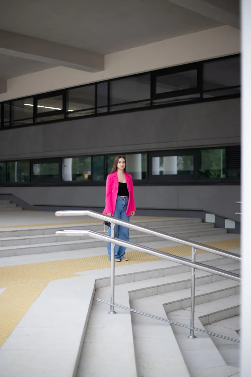 Parkplatz direkt neben dem Gebäude · Eingang hinter dem Parkplatz